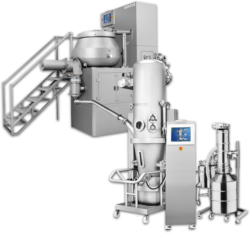Proceso de granulación en sistema cerrado: mezcla / granulación - afinado - secado.